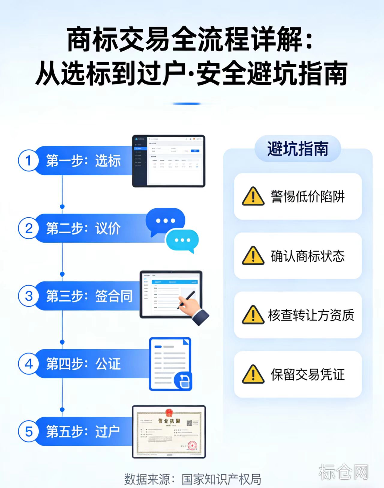 很多老板想快速做品牌,都会选择买商标,但流程复杂容易踩坑。今天把核心步骤和避坑点整理好了,看完就能放心交易👇